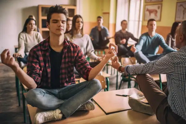 Veel schoolsystemen hebben yoga omarmd met positieve resultaten. Scholen in Denver, Baltimore en de Bronx zijn voorbeelden van degenen die kamers aanbieden waar studenten kunnen ademen, mediteren of asana kunnen oefenen. Sommige scholen sturen studenten naar deze kalmte gebieden in plaats van het gebruik van detentie of andere disciplinaire acties - en melden een afname van gedragsproblemen.